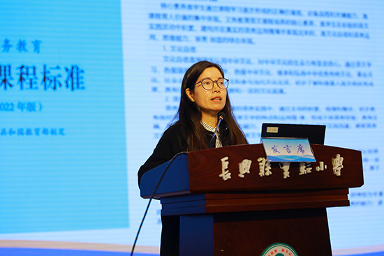 在长兴县实验小学的观点报告环节,董春景等四位老师分别立足语文、道德与法治、美育、非纸笔测评四大领域分享实操经验,提出“三维联动评价共同体”“全流程数智评价体系”等创新思路,为多学科评价改革提供了可借鉴的实践范本。