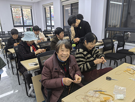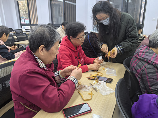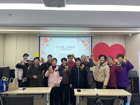 12月2日下午,新碶街道社教中心海棠分中心活动室内传来针线穿过皮料的细微声响,原来是老年居民们一双双灵巧的手,正将二维的皮料,缝制成一个个三维的、充满温度与幻想的皮质小马挂件。