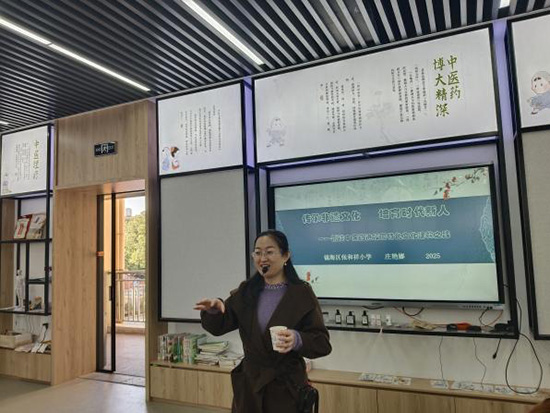 随后,学员们走进镇海区张和祥小学,在庄艳娜校长的带领与讲解下,沉浸式体验了学校“祥和”教育的温暖氛围与中医药文化的独特魅力。该校将中医药文化转化为鲜活的教育资源,劳动教育的设计与实施更是别具匠心,给学员们留下了深刻印象。