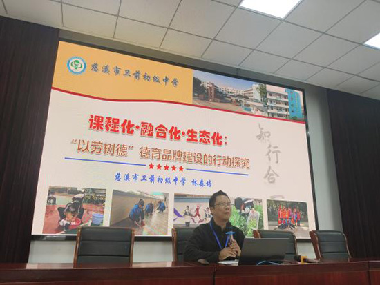 本次培训注重拓宽育人格局与深化专业素养。培训最后阶段,学员们前往宁波进行深度交流学习。在慈溪市卫前初级中学,学员们认真听取了教导处副主任林森培所作的专题报告《课程化·融合化·生态化——“以劳树德”德育品牌建设的行动探究》。报告系统介绍了学校在劳动教育方面的创新实践与宝贵经验,从课程设计到具体落实的各个环节,为学员们开展劳动教育提供了清晰可行的思路。