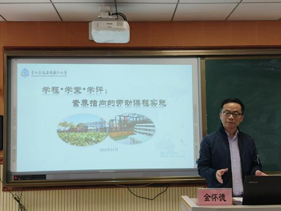 培训聚焦劳动教育课程化实施的关键问题。杭州市劳动教育学科带头人金怀德以《学程·学堂·学评:素养指向的劳动课程实施》为主题,从“劳动学程”“劳育学堂”“劳心学评”三方面向学员们系统阐释了素养导向下劳动课程的实施策略与评价方法。 长兴县劳动教育教研员孙晖作专题讲座《劳动教育——从“课程”到“课堂”》,讲座从劳动素养导向下劳动教育校本课程的“目标”“内容”“实施”“评价”四个维度展开,为学校构建特色化、系统化的劳动课程提供了一套可操作的方法。宁波慈溪市劳动教研员潘琦聚焦《跨学科主题学习的内涵和实施路径》,引导教师探索劳动教育与学科教学深度融合的创新模式。