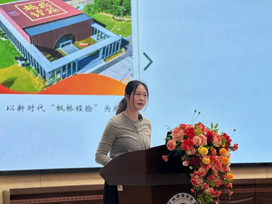 朱程程以《扎根“枫桥经验”,深耕乡土思政——枫中社会·法治学科教研的路径探索与实践成果》为题作报告。她以“枫桥经验”为精神内核与资源源头,遵循“理论引导—实践探索—文本凝练—成果输出”的闭环路径,系统推动乡土资源向立德树人鲜活教材转化。在此过程中,学生实现从“倾听者”到“担当践行者”的成长,教师完成从“耕耘者”到“思想研究者”的蜕变,成功打通乡土资源到育人成果的转化通道。