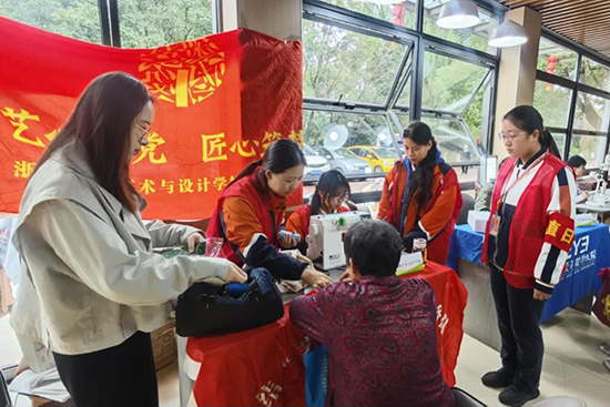 12月9日,第三党支部组织党员教师和学生志愿者至桥西村开展缝补志愿服务。