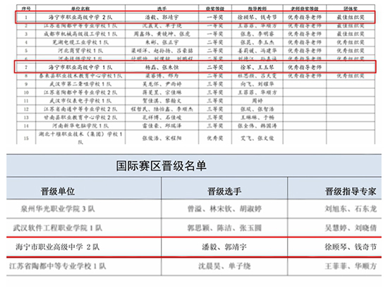 在激烈角逐中,海职高选派的2支队伍,按照比赛规则争分夺秒、沉着应对,尽显专业、严谨、细致和耐心。其中,计算机23班潘毅、郭靖宇团队(指导老师:徐顾琴、钱奇节)以总分第一的骄人成绩,勇夺中职组冠军,并顺利取得国际赛区晋级资格。此外,计算机24班杨磊、张朱恒团队(指导老师:徐军、王玉琴)荣获全国二等奖。相关指导教师获评“优秀指导教师”,学校也荣获“最佳组织奖”。