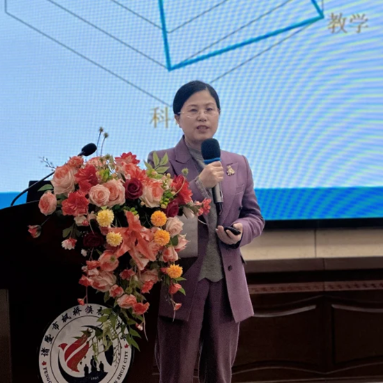 绍兴市教育教学研究院刘晓庆主任以《让科研真实改进教学》为题开展专题讲座,从“立足教学实际回应真实问题”“坚守‘真’导向落实完整探究”“聚焦‘真问题’开展‘真探究’”“推动成果转化实现研教融合”四个维度,结合丰富实践案例,为与会者呈现了兼具借鉴价值与推广意义的教科研路径。绍兴市教育教学研究院杨亚芳副院长作《教科处主任专业成长体系的“六阶”构建与实施路径》报告,提出教师成长“六阶进阶”(从教学经验、教学范式到教育流派)与“三力发展”(学习力积淀—科研力突破—思想力升华)双路径,规划涵盖特色课题、课程体系等七大核心模块的学校大科研发展蓝图,倡导构建“组—校—区—市—省”五级教研体系与“研训用”一体化机制,实现科研与实践深度融合。