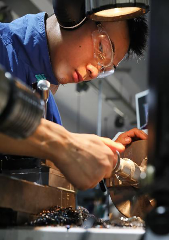 在这场育人机制重构中,学院提出了具有鲜明辨识度的理念——“金线锻魂”。所谓“金线”,不仅象征智能制造领域的技术高度,更代表一条贯穿育人标准、过程管理与教学反馈的质量主线;“锻魂”则强调在技能之外,更需重塑学生的职业精神、价值信念与实践品格。这一育人路径既关注技艺的磨砺,也关注灵魂的淬火,促使“技”与“魂”相互成全、同步升温。