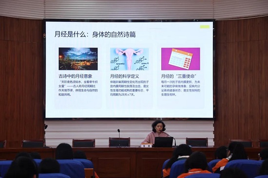 董婕老师以“青春同行,守护成长”为主题,从临床视角切入,结合二十余年妇产科诊疗经验,围绕青春期生理发育、常见健康问题、心理调适方法等内容展开系统讲解。她用通俗易懂的语言、真实生动的案例,细致解析青春期身体变化规律,引导学生正确看待成长过程中的自然现象,学会关注自身健康状态。讲座中,董老师特别强调了青春期健康管理的重要性,从规律作息、均衡营养、卫生习惯、情绪调节等方面提出实用建议,帮助学生建立科学、主动的健康观念。