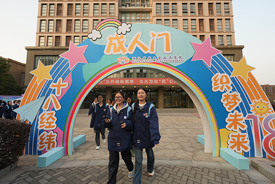 佩戴好成人徽章,整理好衣冠,学子们昂首挺胸,迈过象征独立与担当的 “成人门”。这道门,隔开了稚气与青涩,通向了责任与未来。