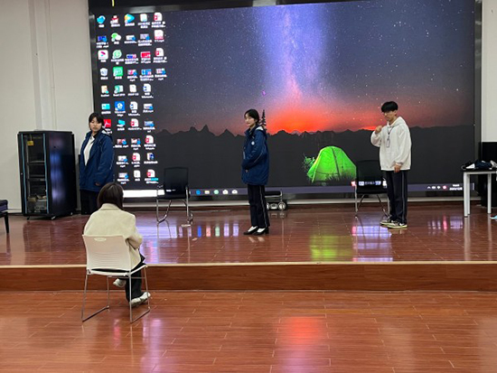 礼仪风采展示环节,海职高团队身着统一制服,精神饱满、仪态端庄,通过精心编排的情景展示,将发型妆容、站姿坐姿、手势鞠躬等13项礼仪要点完美呈现,配合和谐的背景音乐与整齐的队形变换,充分展现了航空服务岗位的职业魅力。理论知识问答环节,选手们从容应答民航基础知识、安全应急知识及民航服务英语等相关问题,展现了扎实的理论功底。