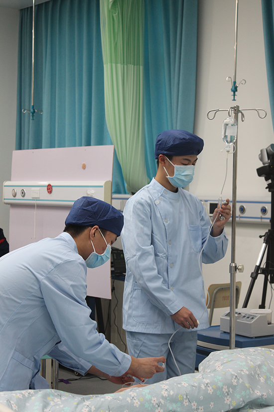 第一赛道要求2名选手协作完成呼吸心跳骤停患者救护,含双人心肺复苏与静脉输液,15分钟内完成,占总成绩50%;第二赛道由组内抽签1人完成老年患者跌倒照护,涉及右踝关节扭伤包扎与轮椅运送,同15分钟完成,占40%。两赛道均配标准化病人还原真实场景,评委以专业公正态度评分,保障结果可信。