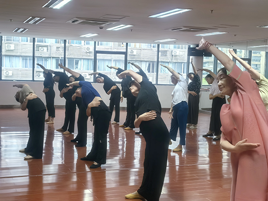 舞蹈房内活力满满,成为社区最靓丽的风景线。伴随着欢快的音乐,舞蹈班学员们身着统一服装翩翩起舞,整齐的动作、饱满的精神状态,丝毫看不出他们的平均年龄已过六十。从基础的肢体舒展到完整的舞蹈编排,从最初的羞涩拘谨到如今的自信大方,学员们在每一次旋转跳跃中重拾青春活力。“跳舞让我身体越来越好,心情也像花儿一样甜。”刚跳完《世界赠予我》的李奶奶擦着额头的薄汗,笑容格外灿烂。
