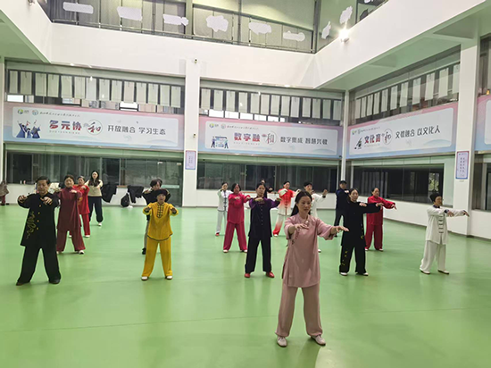 太极班的展示则尽显刚柔并济之美。学员们列队整齐,起势、云手、白鹤亮翅,一招一式舒展从容,将太极拳的韵味与哲思展现得淋漓尽致。“太极讲究身心合一,练了这三个月,睡眠好了,心态也更平和了。”学员王大爷说,大家不仅在晨练时相互切磋,还组建了太极兴趣小组,让健康生活方式在社区传递开来。