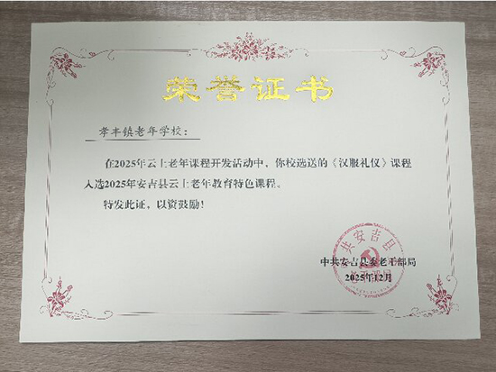 这一张张证书,不仅是对孝丰分院的肯定,更折射出当下老年教育的新趋势:当 “老有所学” 遇上 “文化传承”“美育浸润”,银发生活也能成为城市文化里的一抹亮色。(郝敬德)