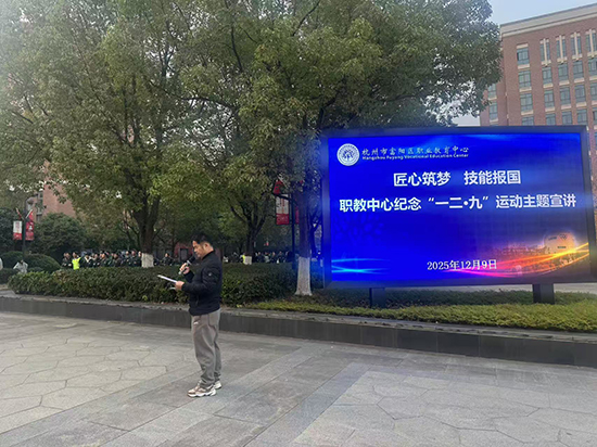 近日,在校团委的组织下,富阳区职业教育中心开展纪念一二·九运动主题活动。活动一:主题团课,各团支部以“纪念一二·九运动,争做新时代职校青年”为主题,开展形式多样的团课。活动二:校团委、校德育处分别面向全体师生做了“匠心筑梦 技能报国”为主题的宣讲,让红色精神在校园中薪火相传。活动三:集体宣誓仪式,全体师生以青春之名立誓,传承先辈精神,践行报国初心。