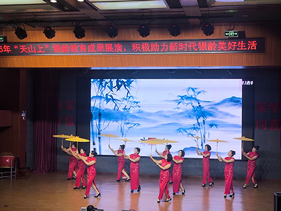 天荒坪中心成校校长汪华忠在致辞中表示,老年教育是终身学习体系的重要组成部分,学校始终致力于为老年人搭建“老有所学、老有所乐、老有所为”的平台,此次展演既是对教学成果的集中检验,更是老年学员精神风貌的生动展现。