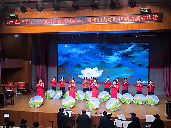 演出在民乐合奏《走进新时代》《歌唱祖国》的激昂旋律中拉开序幕,锣鼓、二胡、笛子、电子琴等各类乐器的合奏气势恢宏,瞬间点燃全场气氛。随后,戏曲《西湖山水》《观灯》选段韵味悠长,学员们字正腔圆的唱腔、惟妙惟肖的身段,展现了传统艺术的独特魅力;太极拳与太极扇表演则刚柔并济,学员们行云流水的动作诠释了中华武术的博大精深,赢得阵阵掌声。
