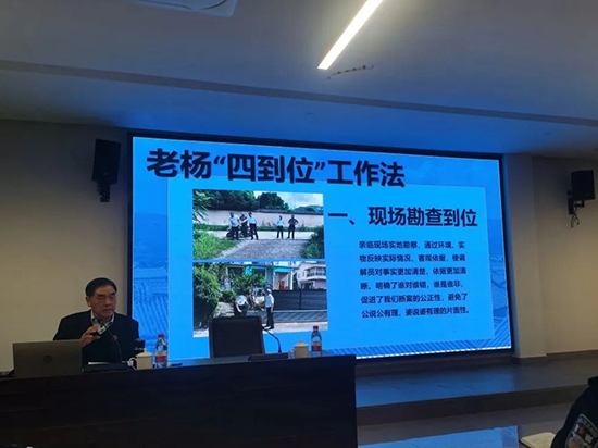 “调解不是‘和稀泥’,是掰开揉碎讲道理,是设身处地解难题。”杨光照深耕基层调解工作多年,总结提炼出“勤、帮、靠、快、公、活”六字工作法,成功化解了无数烦心事的矛盾纠纷。课堂上,他摒弃空泛理论,用接地气的语言分享,从邻里常见的漏水、噪音等矛盾切入,结合六字工作法拆解典型案例:“勤走勤问勤记录,才能摸清矛盾的来龙去脉;帮人难处解人忧,才能让当事人放下戒备;靠着法理也靠着人情,才能找到双方都认可的平衡点;处理纠纷要快,早介入早化解,避免小事拖大;立场一定要公,一碗水端平才能让人信服;方法还要活,因人而异、因事施策,才能对症下药。”