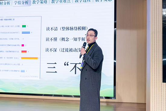 第四组温州市教育教学研究院黄黎茹老师以《国家的儿子》《心有一团火,温暖众人心》为蓝本,借项目任务、人物画像比对经典镜头。安吉职业教育中心学校沈蕾老师聚焦《于“实”中见精神,于“践”处写文章》,通过任务驱动法和合作探究法,将人物进行对比分析。两堂课各具特色,设计精巧,以对比式教学深挖人物内核,尽显扎实的教研功底与创新的课堂智慧。