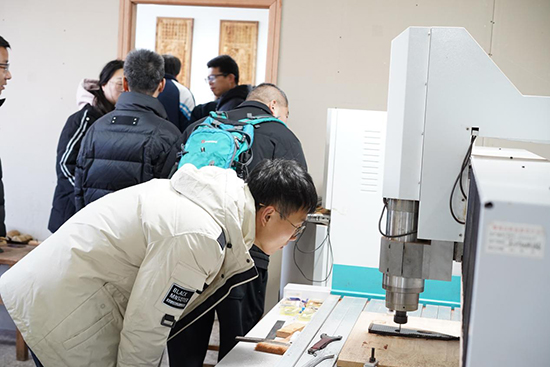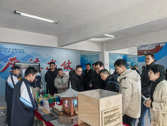 来访嘉宾依次参观了学校的木雕实训室、民间工艺精品馆、汽修钣金与油漆实训室、汽车营销实训室、服装实训楼及创客教育展厅,对学校特色实训基地建设和实践教学成果给予高度评价。