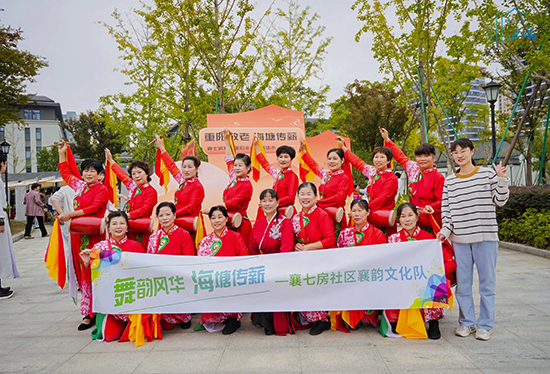 另一边的腰鼓班则是一派热闹欢腾的景象。鼓槌起落,红绸翻飞,学员们身着统一服装,踏着整齐的步伐,敲出铿锵有力的节奏。腰鼓讲究“身随鼓动,鼓随人鸣”,从基本的鼓点节拍,到复杂的队形变换,老人们顶着烈日反复练习,汗水浸湿了衣衫,却浇不灭心中的热情。结业展演中,激昂的鼓点响彻社区,豪迈的姿态尽显活力,展现出新时代老年人昂扬向上的精神风貌。