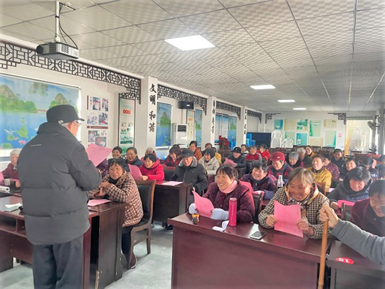 1月8日下午,安吉县章村镇章村村文化礼堂内歌声悠扬、暖意融融,由安吉县社区教育学院章村学习中心组织的老年人红歌教唱活动圆满举行,48位老年红歌爱好者齐聚一堂,在退休教师金则民的手把手指导下,重温经典旋律,传承红色记忆。