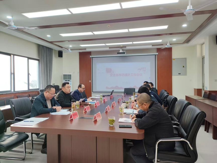 近日,安吉学院联合县域内各成人文化技术学校(简称“成校”)召开学历提升工作专题会议。安吉县教育局职成教科副科长夏吉伟、安吉学院书记院长王华立、招生分管院长、招生办主任及全县各成校校长参会,共同为县域学历继续教育高质量发展谋篇布局。