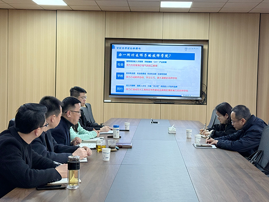调研以专题汇报与深度交流相结合的形式展开。会上,校党委书记姚忠杰代表学校全体师生对胡孝明局长一行的到来表示热烈欢迎,并以“努力办接海宁地气的技工教育”为主题,作了全面详实的工作汇报。姚忠杰书记的汇报系统勾勒了学校的发展脉络与战略思考:从“耕植技工培育,服务地方产业发展”“弘扬沈鸿精神,擦亮技工教育的底色”“打造‘鸿小匠’品牌,创新实践高技能人才培养”三个方面,总结了近年来学校在党建品牌塑造、专业建设、师资锻造、育人阵地拓展等方面取得的扎实成效,也坦诚深入地剖析了当前面临的发展瓶颈与挑战,并清晰地阐述了下阶段在关键领域深化改革、突破创新的思路与举措。随后,副校长王立群、周刚、程锋、潘晓刚立足各自分管领域,分别就教育科研、校企合作、教学管理、学生德育等条线的工作进展、特色亮点及下一步计划向调研组作了补充汇报。