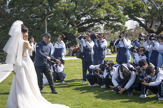 从清晨到午后,从艳阳到斜晖,他们不仅拍摄人物与景观的融合,也用镜头记录园林本身的建筑之美。快门起落间,光影流转,佳作频出。