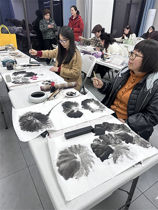 国画课程以“荷花”为创作主题,贴合大众审美与传统文化需求。授课教师从荷花的形态勾勒、线条运用、色彩晕染等基础技巧入手,耐心讲解每一个创作细节,针对学员的不同基础进行个性化指导,从落笔的轻重缓急到上色的浓淡层次,细致点拨、逐一纠正。学员们凝神静气、提笔创作,在笔墨丹青间感受国画艺术的韵味,在动手实践中提升审美素养,现场弥漫着浓厚的文化气息。
