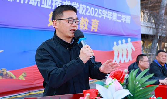陈肖龙校长在典礼上致辞。他回顾了学校过往办学成果,明确2026年是学校发展的关键之年,并结合2026马年“奔腾、奋进”的寓意,围绕“力量从何而来”,为全体师生分享了五点启示:一是依托学校“紫藤花感恩德育”,让感恩成为每个人的精神底色,这是力量的根基;二是践行教育部“健康第一”理念,坚持运动、调节心态,以健康身心作为奋斗的基石;三是学习冬奥健儿“更快、更高、更强——更团结”的精神,在实训和各类竞赛中,诠释精益求精的工匠精神;四是将个人成长融入国家发展,练就过硬技能,努力成为能工巧匠、大国工匠;五是自觉遵守校规校纪、践行文明礼仪,共同守护和谐有序的校园环境。同时,他针对性勉励高三学子全力冲刺高考,高一、高二学子夯实基础、厚积薄发,叮嘱全体教师坚守育人初心,护航学子成长。