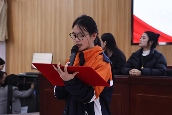 第二十四期结业学员代表鲍奕含发言。她结合自身学习成长经历,号召全体学员以“德技并修”为目标,以“知行合一”为准则,在业余党校的熔炉中锤炼品格、增长才干,在职业教育的赛道上跑出属于自己的精彩。