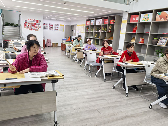 参与课程的老年朋友们精神饱满、兴致盎然,个个凝神静气,手握毛笔认真临摹练习。大家全神贯注地在宣纸上挥洒笔墨,一笔一画尽显专注,在反复练习中细细揣摩书法的韵味。学员们时而低头琢磨笔法,时而抬头请教老师,课间休息时,学员们还相互交流学习心得、欣赏彼此的习作。“退休后在家闲着没事,社区开设书法课正好圆了我们的书法梦,既能学习传统文化,又能和老伙伴们聚在一起,日子过得特别充实有意义。”一位老年学员笑着说道。