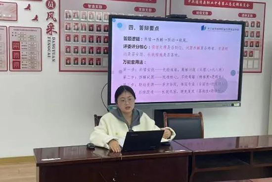 活动最后,丁晶星结合自身参赛经历,分享了情景模拟答辩的实战心得。她从语言表达的艺术性、角色代入的真实感、时间把控的精准度等细节入手,用生动案例讲述备赛中的困惑与突破。她特别提到,情景模拟不仅是技巧的比拼,更是教育理念的体现,只有真正走进学生内心,才能打动评委、解决问题。