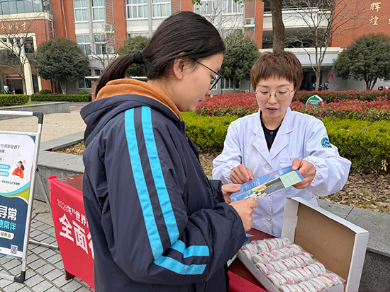 活动现场,印有“全面行动 全力投入 全民参与 终结结核”的红色横幅格外醒目,宣传咨询台、知识展板区有序排开,吸引不少同学驻足观看。在知识展板区,图文并茂的内容生动展示了结核病的传播途径、常见症状、预防措施及国家相关免费治疗政策。宣传咨询台前,医护人员组成服务团队,向师生发放防治手册和宣传折页,并耐心解答大家的疑问。“咳嗽、咳痰两周以上,要警惕肺结核的可能。”“结核病可防可治,规范治疗是关键。”“不随地吐痰,咳嗽打喷嚏时掩住口鼻,既保护自己,也保护他人。”他们用通俗易懂的语言,将健康知识传递给每一位前来咨询的师生。