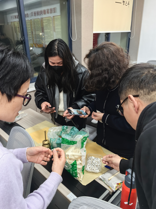 本次培训内容丰富、形式多样。学员们首先学习了三十种常用中草药的辨识方法,从外观形态到药性功效,老师们讲解生动、深入浅出。随后,大家动手实践,学习包药包、制作艾草锤、调配养生茶包、缝制香囊等。教室里,称药的、捣药的、装袋的、缝制的各司其职,一派热火朝天的景象。