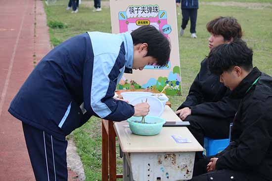 相较于个人项目的“勇者独奏”,团体项目更彰显青春共鸣与班级凝聚力。两人三足、立定跳远接力、极速三子棋、接力乒乓球等项目中,参赛队员分工协作、默契配合,将个人力量融入团队之中。赛场上,队员们相互鼓励、彼此支持,成功时击掌相庆,失误时互相安慰,让竞技超越了胜负本身,成为培育同窗情谊、增强团队信任的生动课堂。