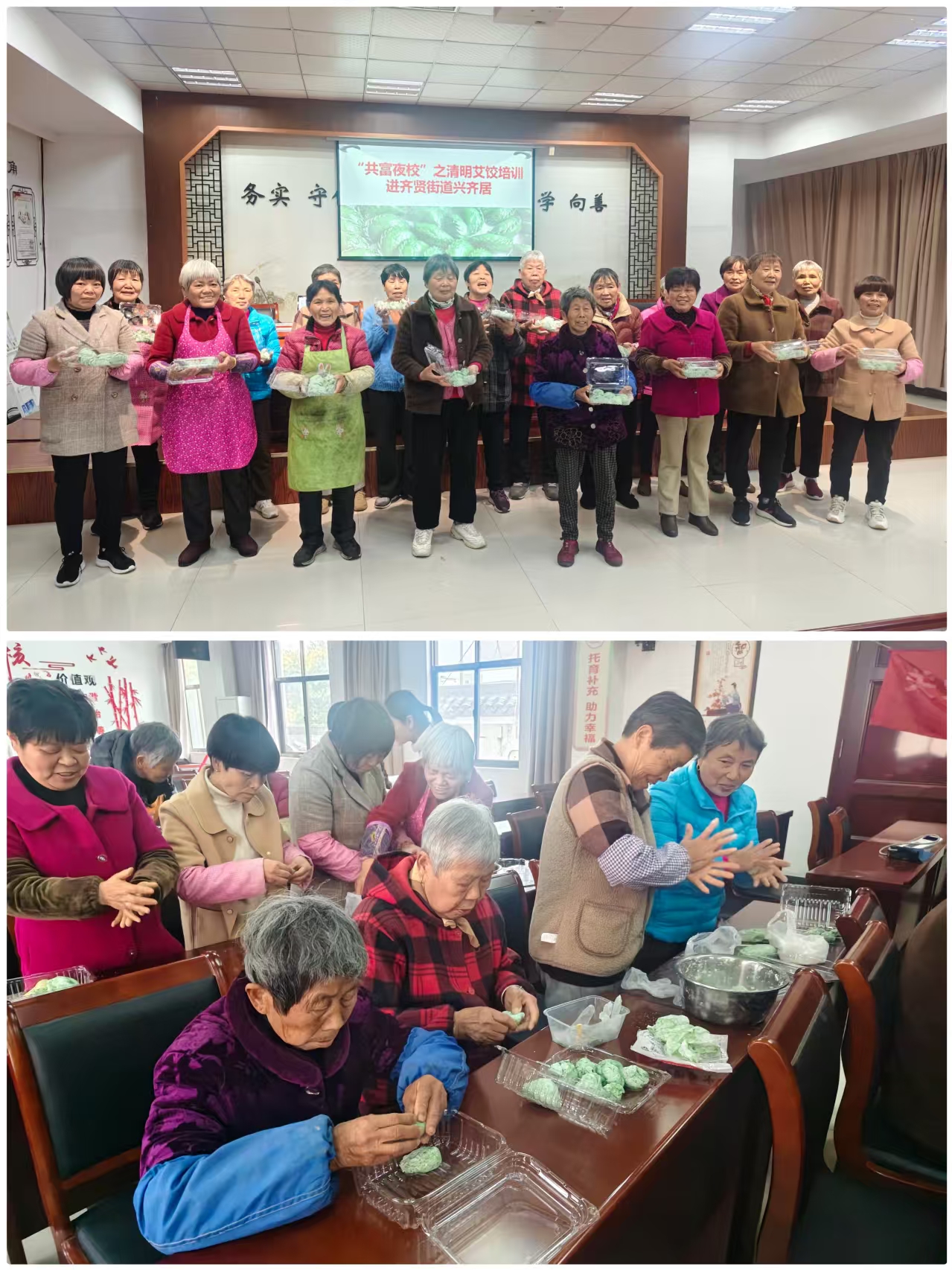 “清明承古韵,艾饺传安康”,一年一度的清明节来临之际,柯桥区齐贤成人文化技术学校送教进村居文化礼堂,为村居居民们开展艾饺制作培训。