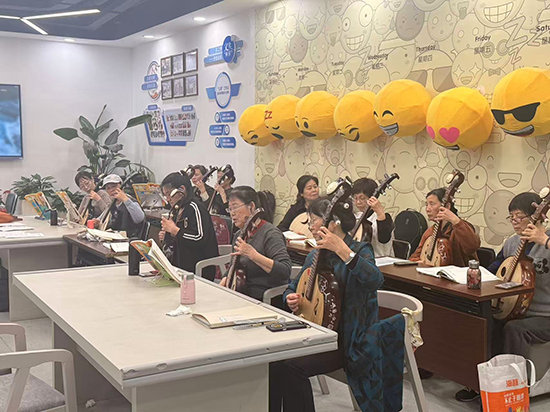 中阮作为中国传统弹拨乐器的瑰宝,音色圆润柔和、醇厚悠远,兼具高音的清脆与低音的深沉,素有“东方吉他”之美誉,因其上手难度适中、韵味独特,深受老年居民的喜爱,是传递传统文化魅力的重要载体。中阮班的开设,既是落实“文化惠民”政策的具体举措,也是搭建邻里交流、以乐养心平台的生动实践,让老年居民在学习中感受传统乐器之美,丰富晚年精神文化生活。