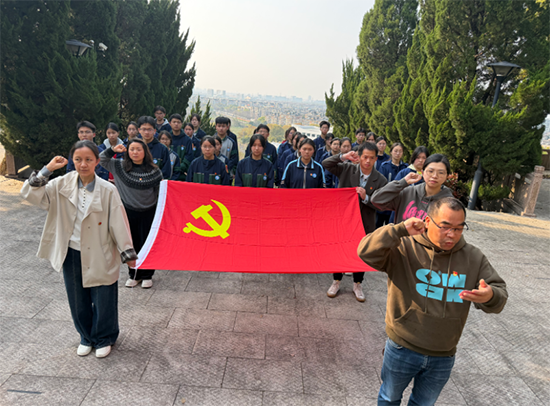 默哀毕,团员代表结合卫校学子身份动情发言,回望革命先烈浴血奋战的峥嵘岁月,立下青春誓言:以先烈为榜样,传承革命精神,刻苦钻研医护知识,锤炼过硬本领,以青春之力践行医者初心,努力成长为守护人民健康的合格医卫人才。教师党员代表立足教育岗位,表示将发挥党员先锋模范作用,坚守立德树人使命,用爱浇灌、用心育人,引领学生传承红色基因、勇担时代重任。随后,党员教师重温入党誓词,全体团员重温入团誓词,铿锵誓言在陵园上空久久回荡,激荡着不忘初心、奋勇前行的坚定信念。