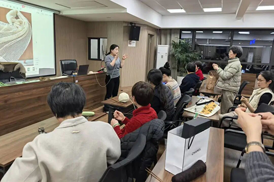 “起针要这样拿,绕线力度要均匀……”课堂上,授课老师化身“织毛衣达人”,从毛线的种类、材质特点到粗细搭配,用通俗易懂的语言细致讲解;重点拆解了“编织密度控制”这一核心技巧,让大家直观理解松紧度对成品美观度的影响,避免出现过松、过紧或尺寸偏差的问题。