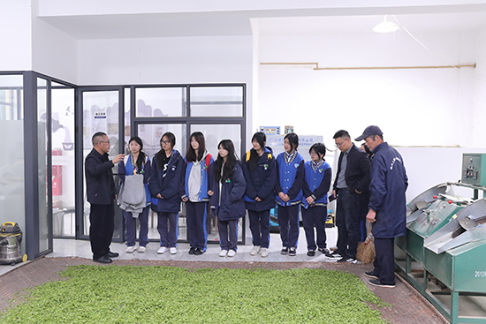 在泰岳村金叶子共富工坊、泰岳茶厂,师生们开展沉浸式实践学习:参观茶文化展厅,全面了解岭南茶史与茶圣事迹;走进制茶车间,细致观摩茶叶采摘、萎凋、杀青、揉捻、烘干等全流程工艺;品鉴上虞翠茗、岭南辉白等特色茶品,直观感受虞南高山茶的鲜香醇爽;在互动体验中,将课堂理论与实地操作深度融合,切实提升茶学素养。