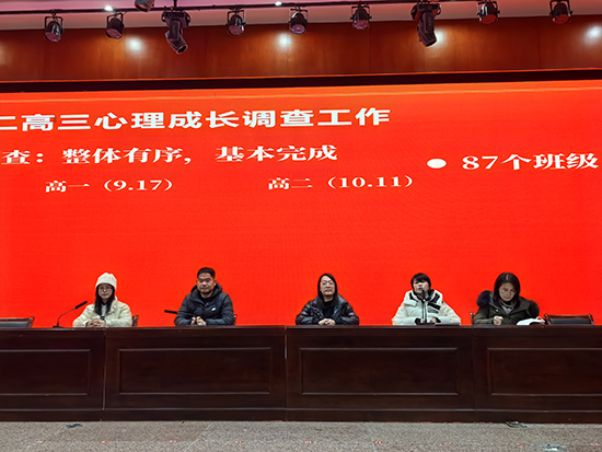 闭营仪式上,心理辅导站张文竹老师首先对本学期心理委员工作进行全面总结。本学期,心理委员们立足“观察、跟踪、上报、辅导”的核心职责,成为班级心理健康的“第一道防线”:协助完成87个在校班级的心理成长调查,高一、高二、高三实测完成率分别达87.24%、77.76%、76.72%;助力高一男女分场青春健康知识讲座顺利开展,评选优秀感悟104份;积极参与心理游园活动筹备与执行,为校园心育氛围添彩。此外,成长营开展多主题培训,培训覆盖情绪调适、心理问题识别、共情技巧等内容,高二部分场次出勤率达 100%,展现了心理委员们的积极参与度。